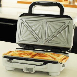 Den tvådelade grillplattan är löstagbar för enkel rengöring. Finns lösa plattor för att göra våfflor att köpa.